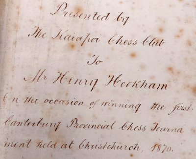 On his retirement Mr Hookham was presented with a "a magnificent inlaid chess table."